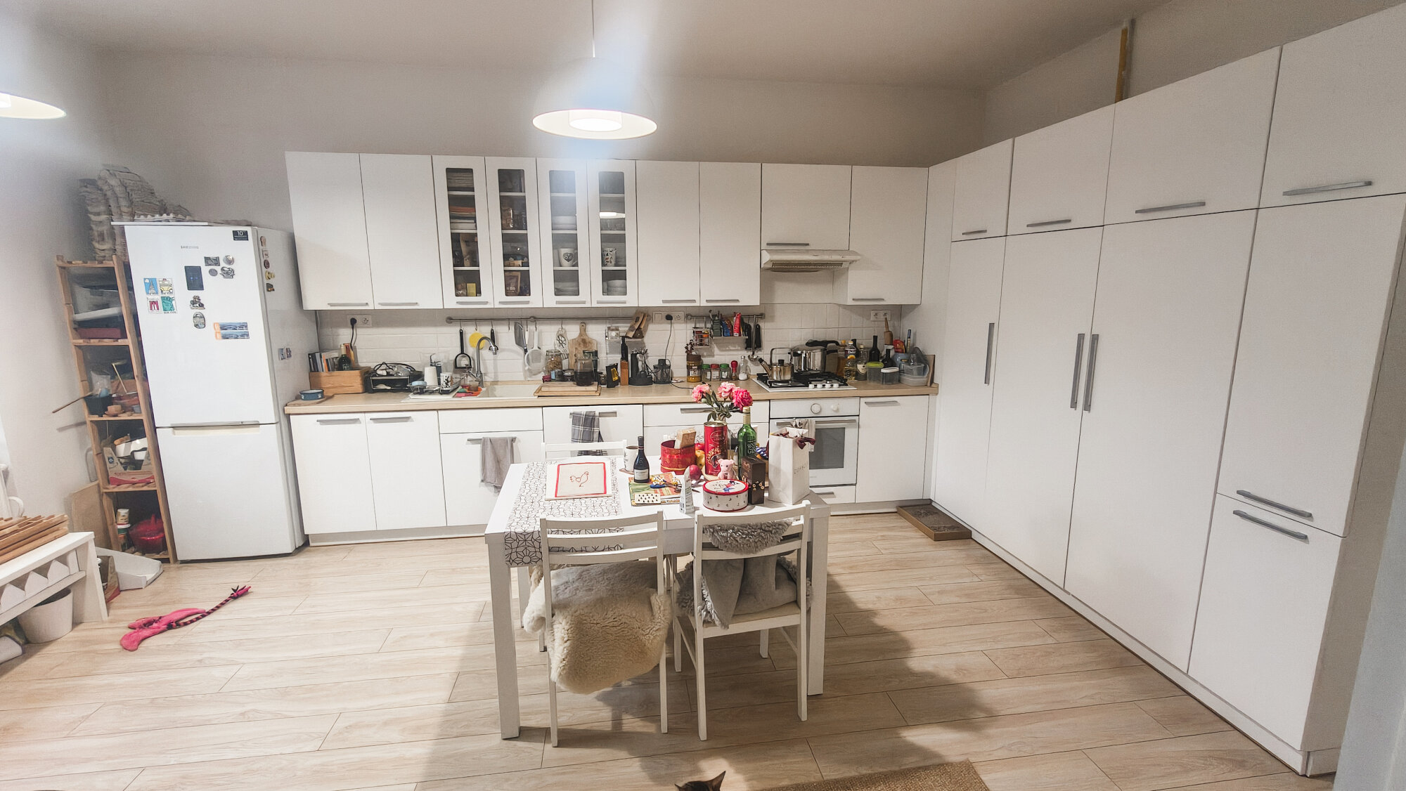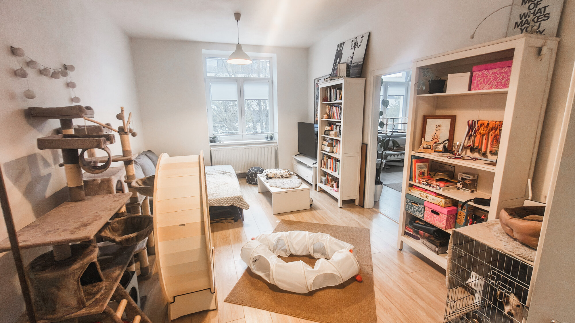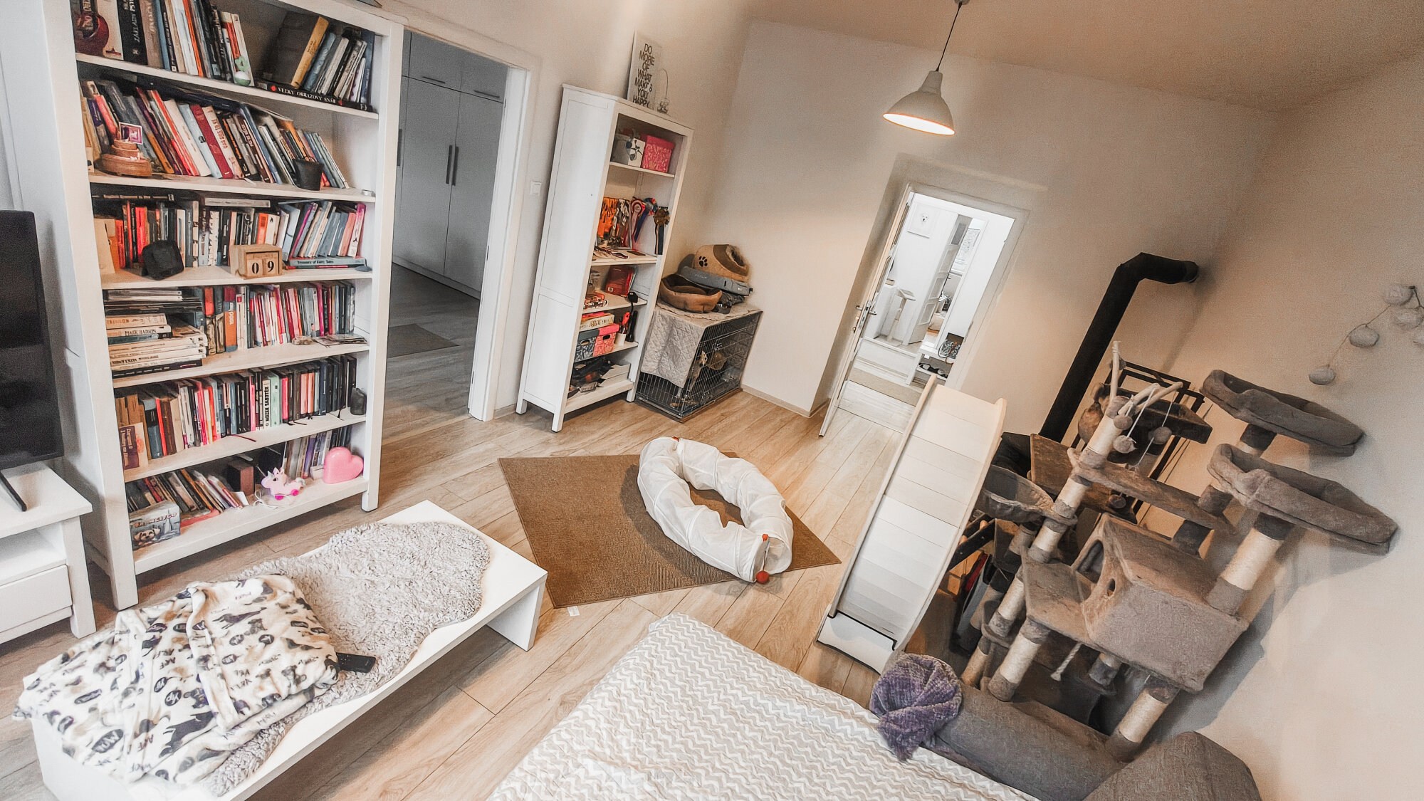 Priestranný presvetlený byt s veľkou kuchyňou a modernym bielym nábytkom. Nachádza sa na 1.ppschodí, výhľad na ulicu aj do tichého dvora. K dispozícii veľká kuchyňa, obývačka, priestranná spálňa, pracovňa, samostatná kúpeľňa a wc. V byte je funkčná pec na tuhé palivo.